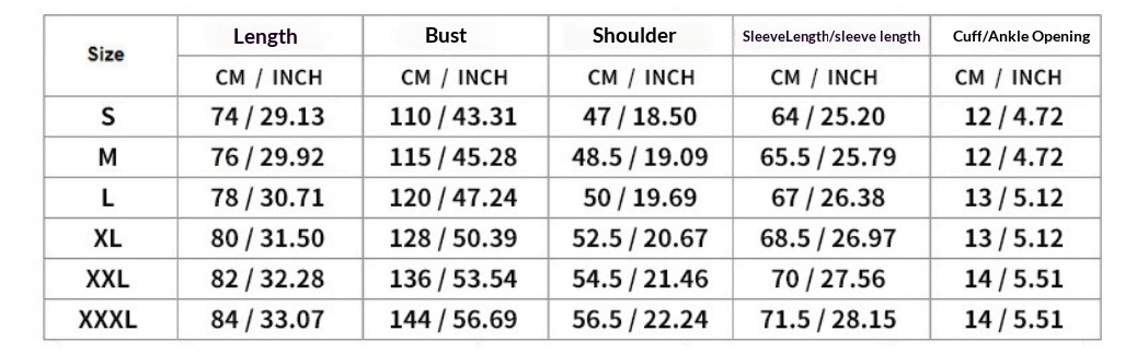 Size: S, M, L, XL, XXL, XXXL